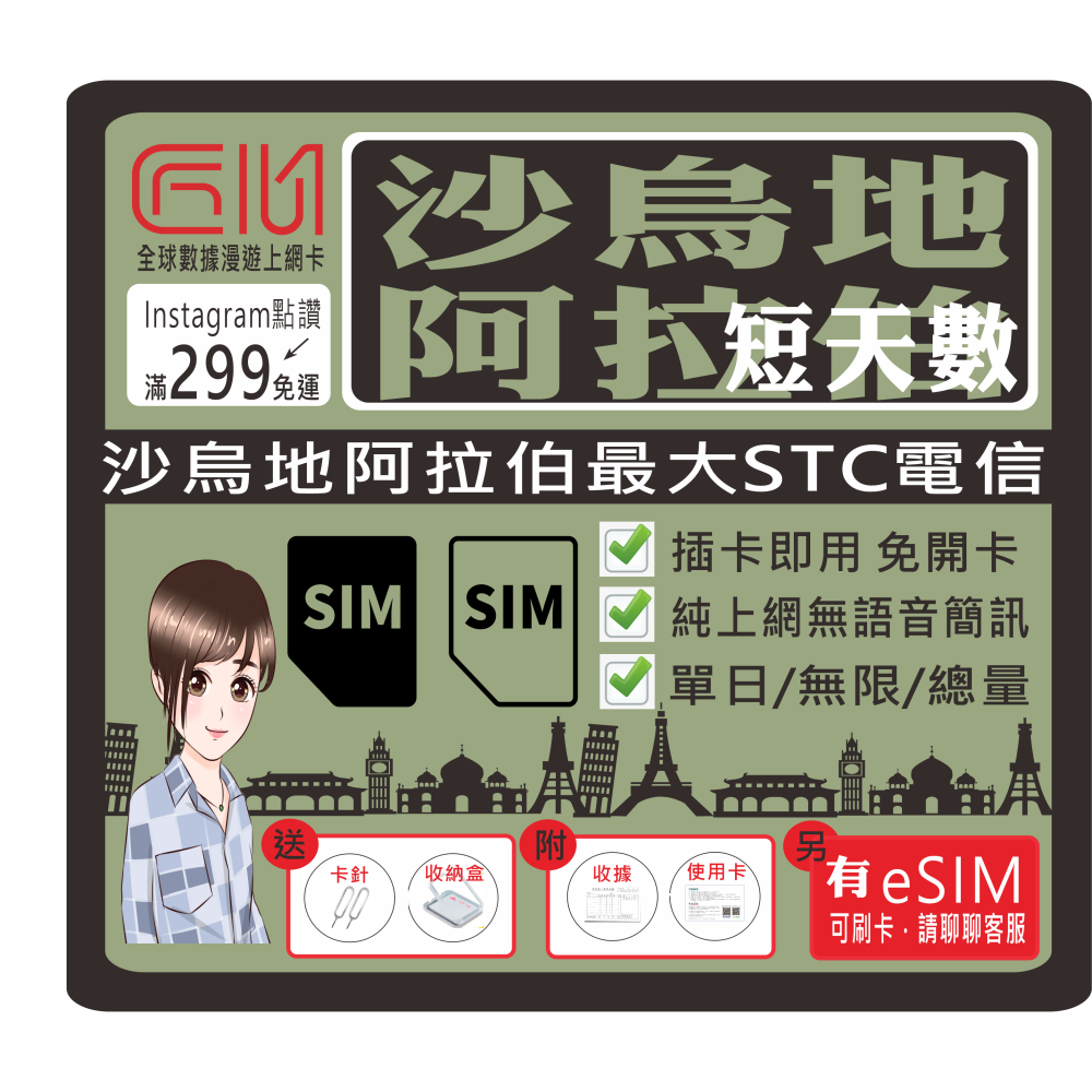 ├方案A┤沙烏地阿拉伯每天1GB流量型(輕量吃到飽)