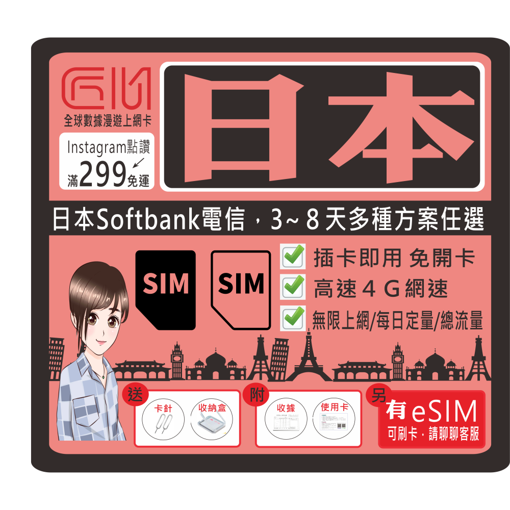 ├方案A┤日本SoftBank每天1GB流量型(輕量吃到飽)