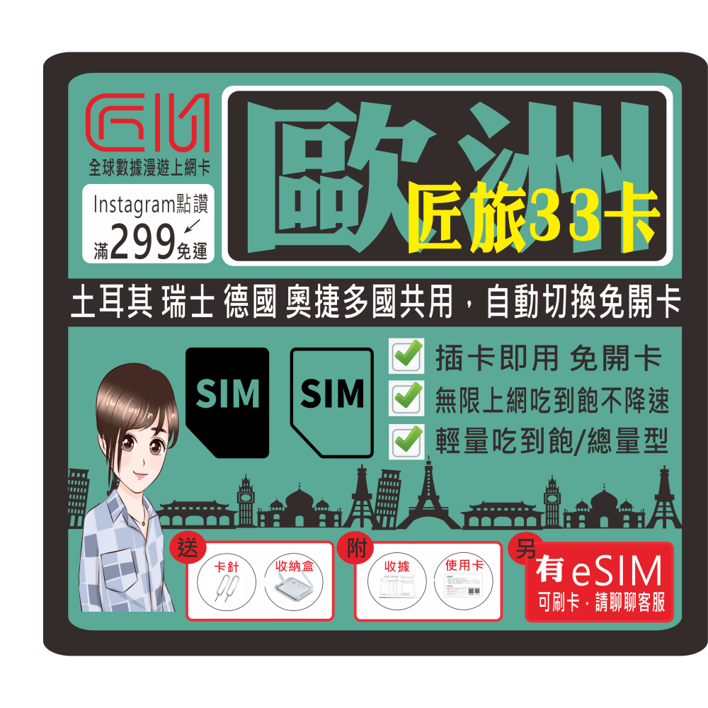 ├匠心┤歐洲匠旅33卡 單日/無限 歐洲上網卡 土耳其 奧捷 瑞士 德國 歐洲網卡 歐洲sim卡 歐洲sim 多國共用