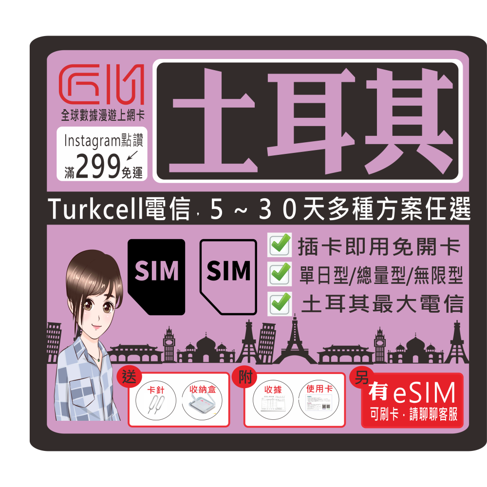 ├方案A┤純土耳其每天1GB流量型(輕量吃到飽)
