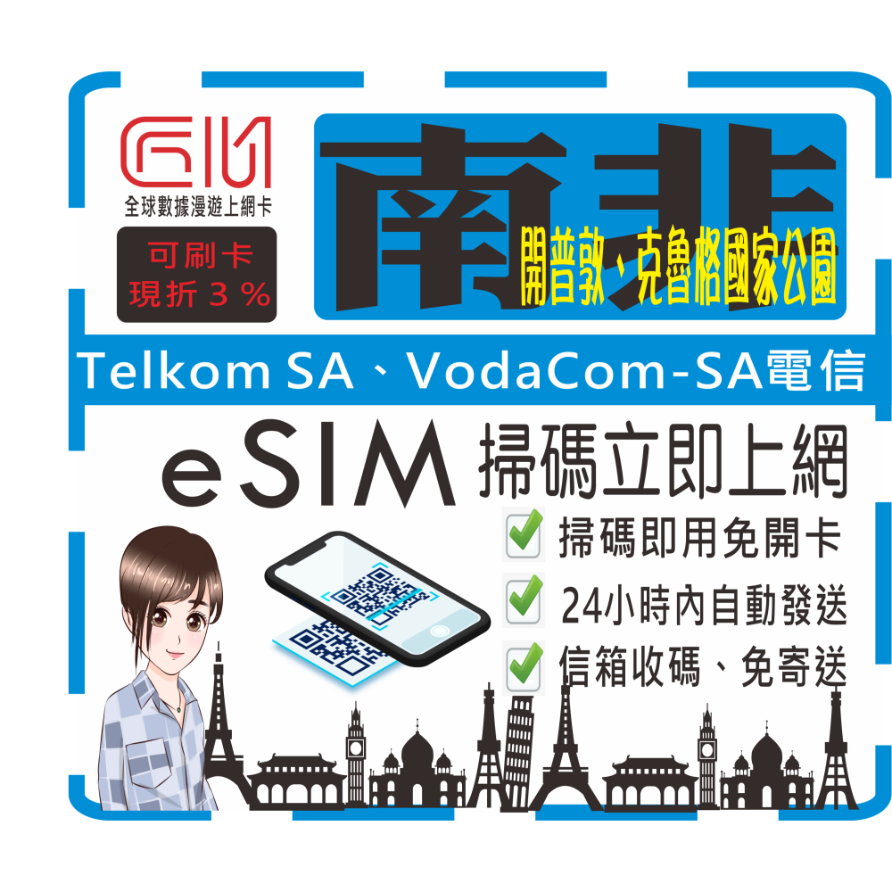 ├方案A┤南非每天1GB流量型(輕量吃到飽)(僅限南非使用)