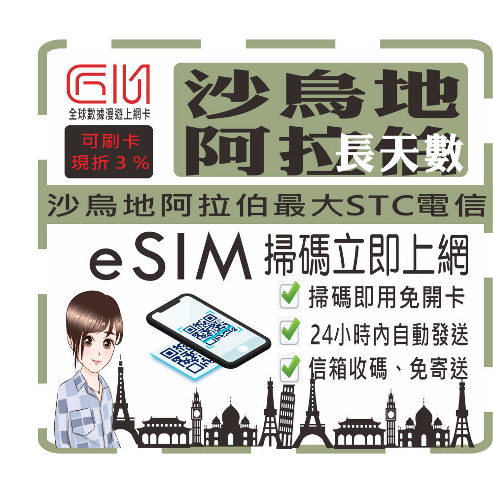 ├方案A┤沙烏地阿拉伯每天1GB流量型(輕量吃到飽)