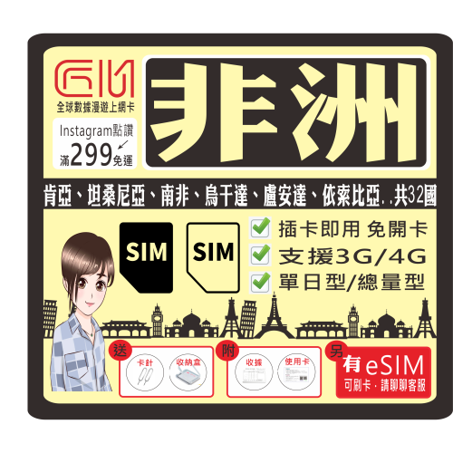 ├方案B┤肯亞坦桑尼亞每天1GB流量型(輕量吃到飽)