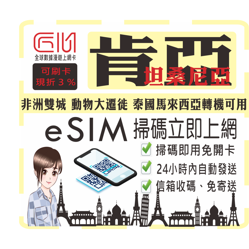 ├方案B┤肯亞坦桑尼亞每天1GB流量型(輕量吃到飽)