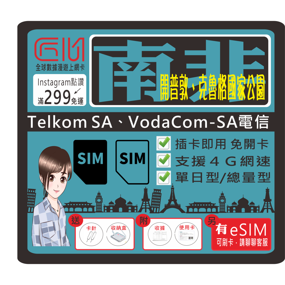 ├方案E┤南非每天1GB流量型(輕量吃到飽)(僅限南非使用)