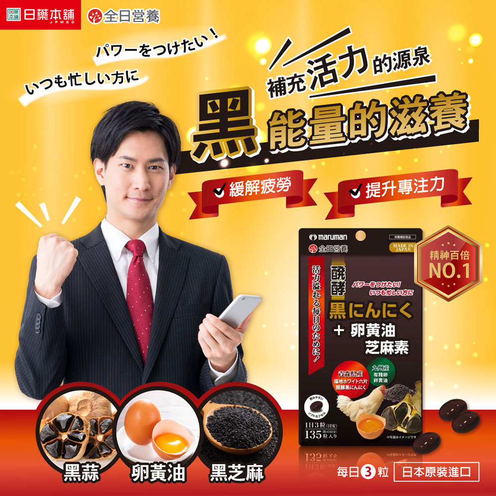 - 紅花籽油、明膠(豬)、發酵黑蒜粉末、甘油、蜂蠟、脂肪酸甘油酯、