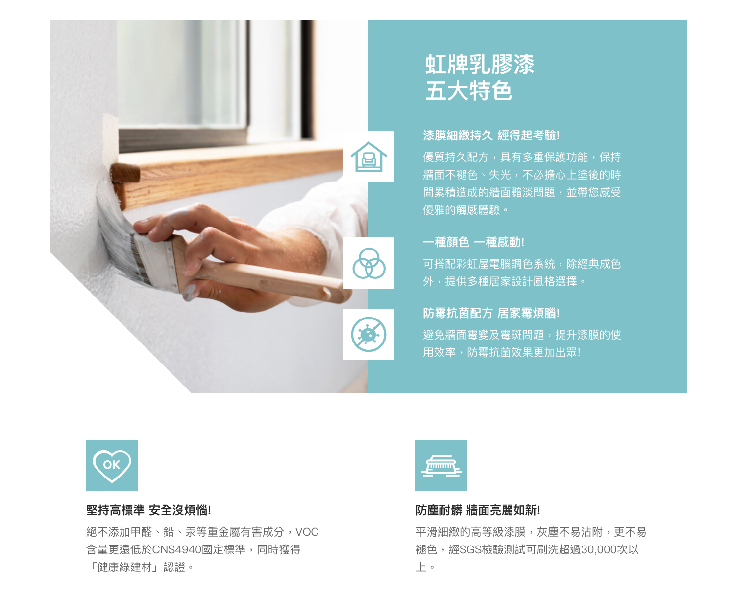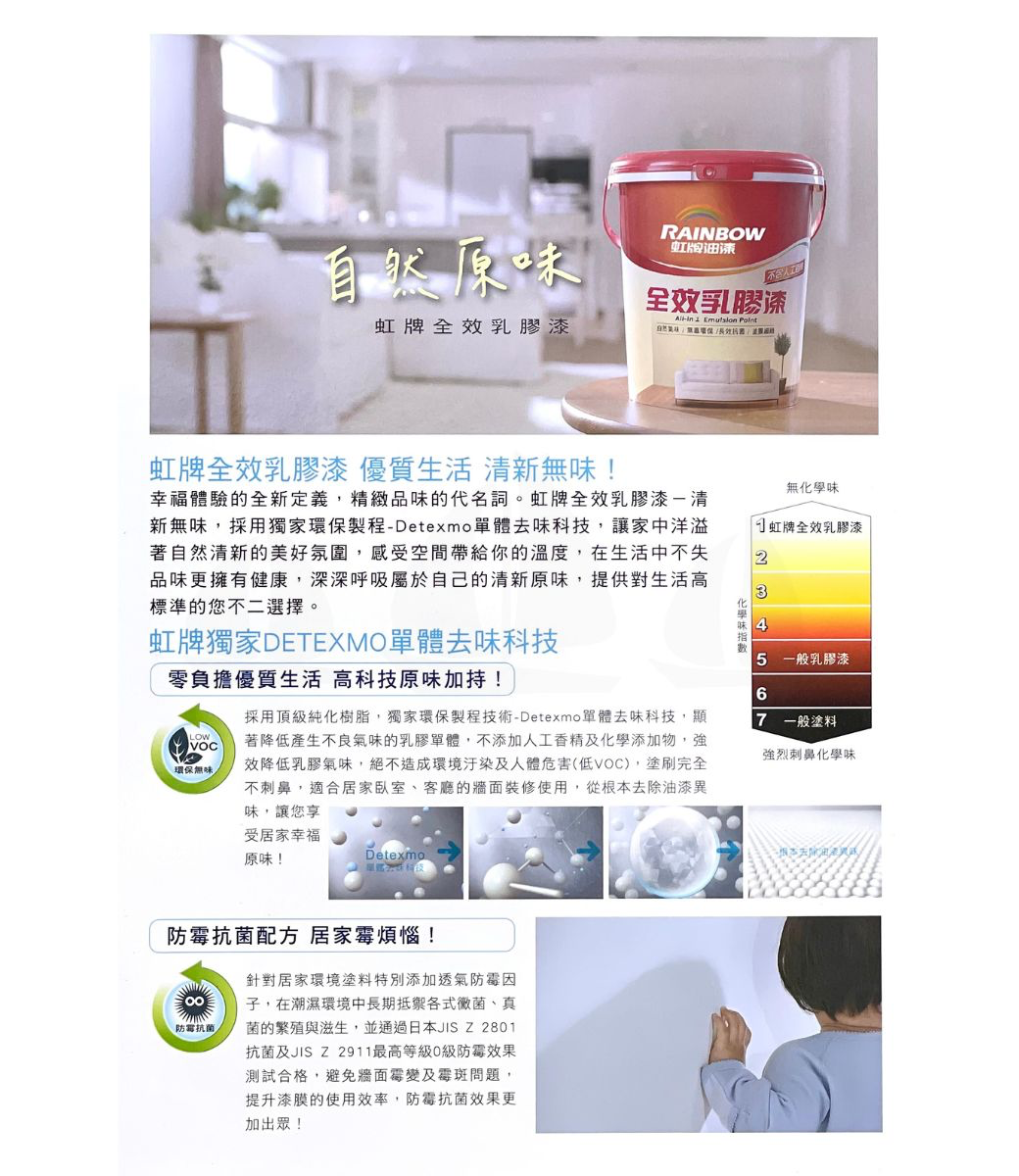 ●使用清水為溶劑,極低VOC(有機揮發物),無化學添加味道、環保安全不傷人體