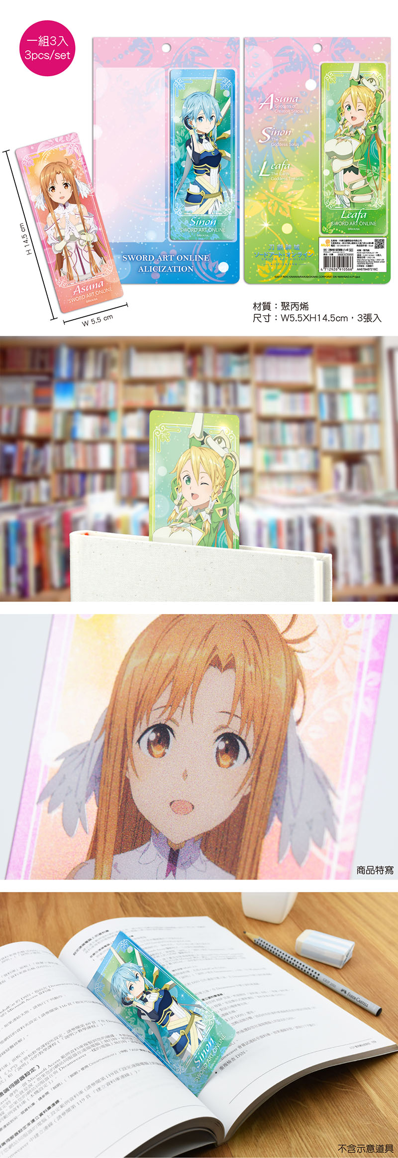 銀箔書籤(3入)-刀劍神域ⅢA款(綜)│木棉花│正版│動漫周邊精品│BJ4動漫