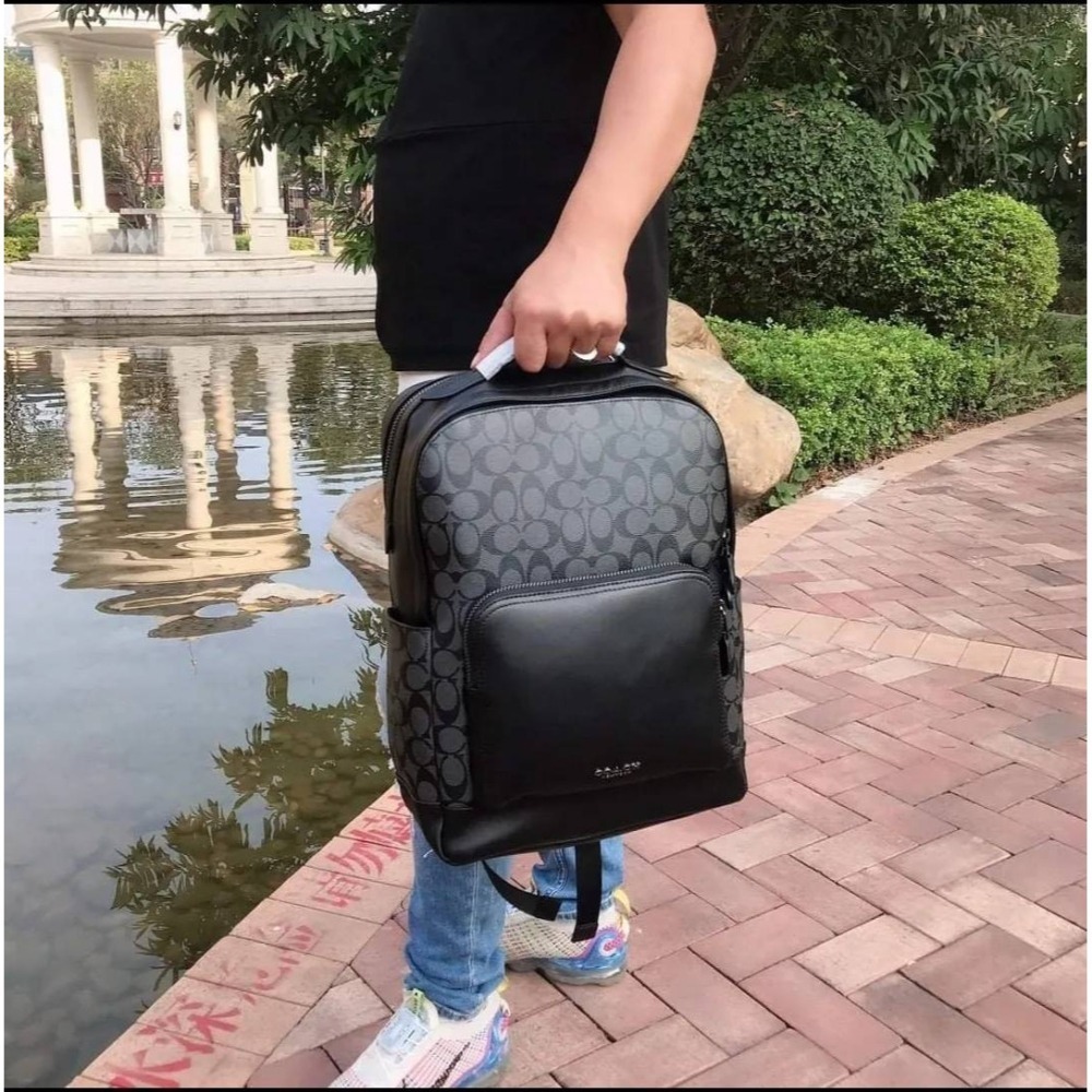 品名:COACH 蔻馳男士拼色雙拉鍊雙肩包 電腦包 書包