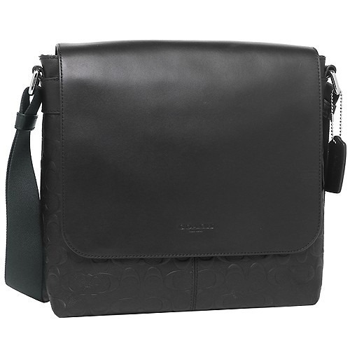 蒄家 F54771 馬車LOGO型男最愛 郵差包 素面牛皮翻蓋方型包 灰黑老花 黑咖老花
