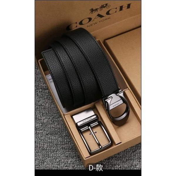 COACH 男款經典logo 雙頭皮帶禮盒