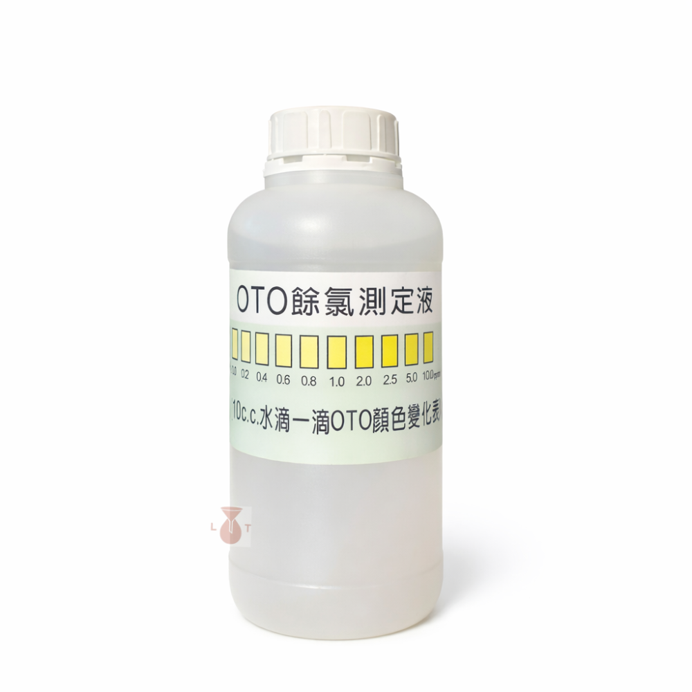 水中液體馬上會顏色反應,呈現無色至淡黃的顏色,可與瓶身顏色相比較,判定水中含氯量。