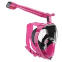 不像一般浮潛的潛水鏡視角只有正前方平面,而全罩乾式浮潛面罩具有180度弧形寬大視野的防霧鏡。