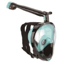 全罩乾式浮潛面罩設計像一個頭盔,完整地包著整個面部,可以讓玩家用鼻子呼吸,而且潛入水時也不會有海水進入面罩。