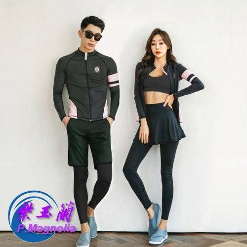 台灣現貨/浮潛服拉鍊潛水服分體水母衣男女長袖裙褲游泳衣泳裝長褲套裝/紫玉蘭1903 粉邊