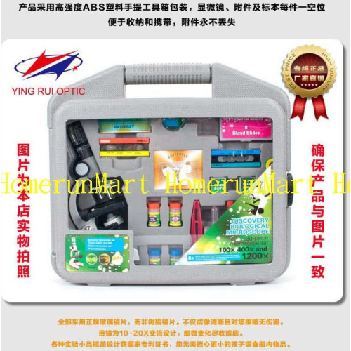 OM學生科學實驗鑑定1200倍生物顯微鏡 整套蝦卵養蝦標本工具精密金屬座塑膠收納箱 小科學家奇妙微觀世界兒童光學顯微鏡