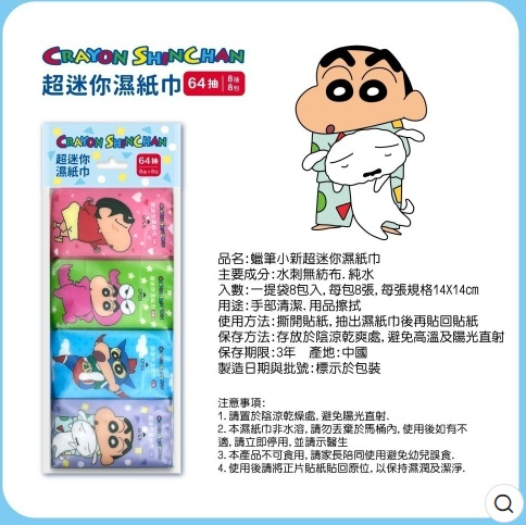 蠟筆小 濕紙巾 超迷你濕紙巾 濕紙巾 (單包8抽,共8包入 64抽)