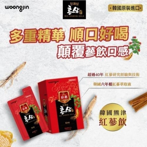 韓國WOONGJIN 韓國熊津紅蔘飲 8入組 盒裝 70ml/包 (韓國原裝進口) 保存期限2027.03月