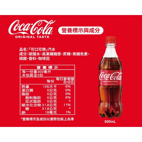成分:碳酸水、高果糖糖漿、蔗糖、焦糖色素、磷酸、香料、咖啡因