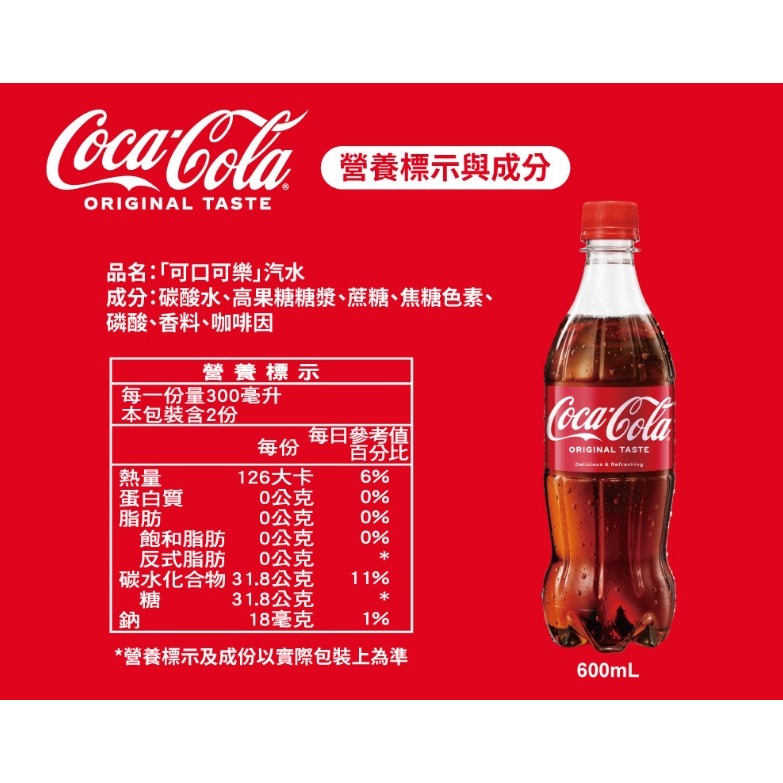 可口可樂 600ml 單瓶售 保存期限 2026.07 (單筆訂單最多7瓶)