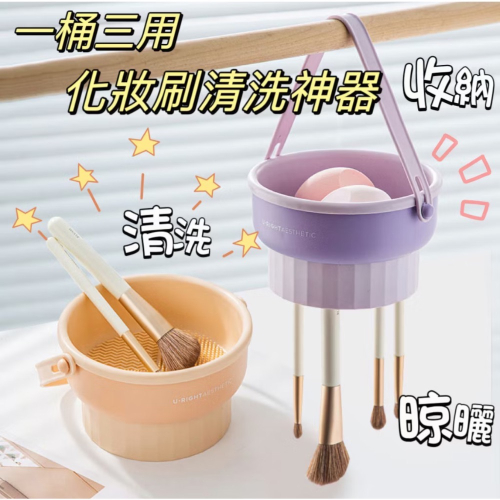 刷具清潔碗化妝刷清潔收納盒 刷具清潔 三合一粉撲清潔