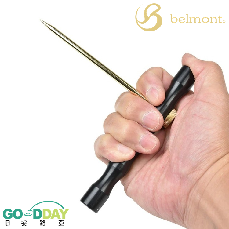 材質:本體:鋁合金,針尖:不鏽鋼(鍍金),旋鈕部:黃銅(鍍金)