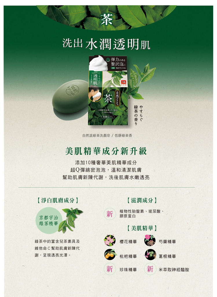 【日本牛乳石鹼】自然派綠茶洗顏皂80g