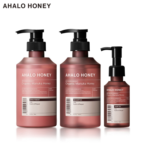 【AHALO HONEY】天使光蜂蜜水潤洗髮+潤髮+髮油(有機蜂蜜/保水配方/乾溼髮適用/450ml/100ml)