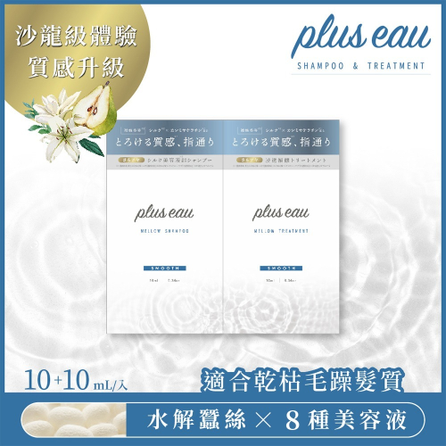 【plus eau】水解蠶絲洗潤髮體驗組-一般款10mlx2