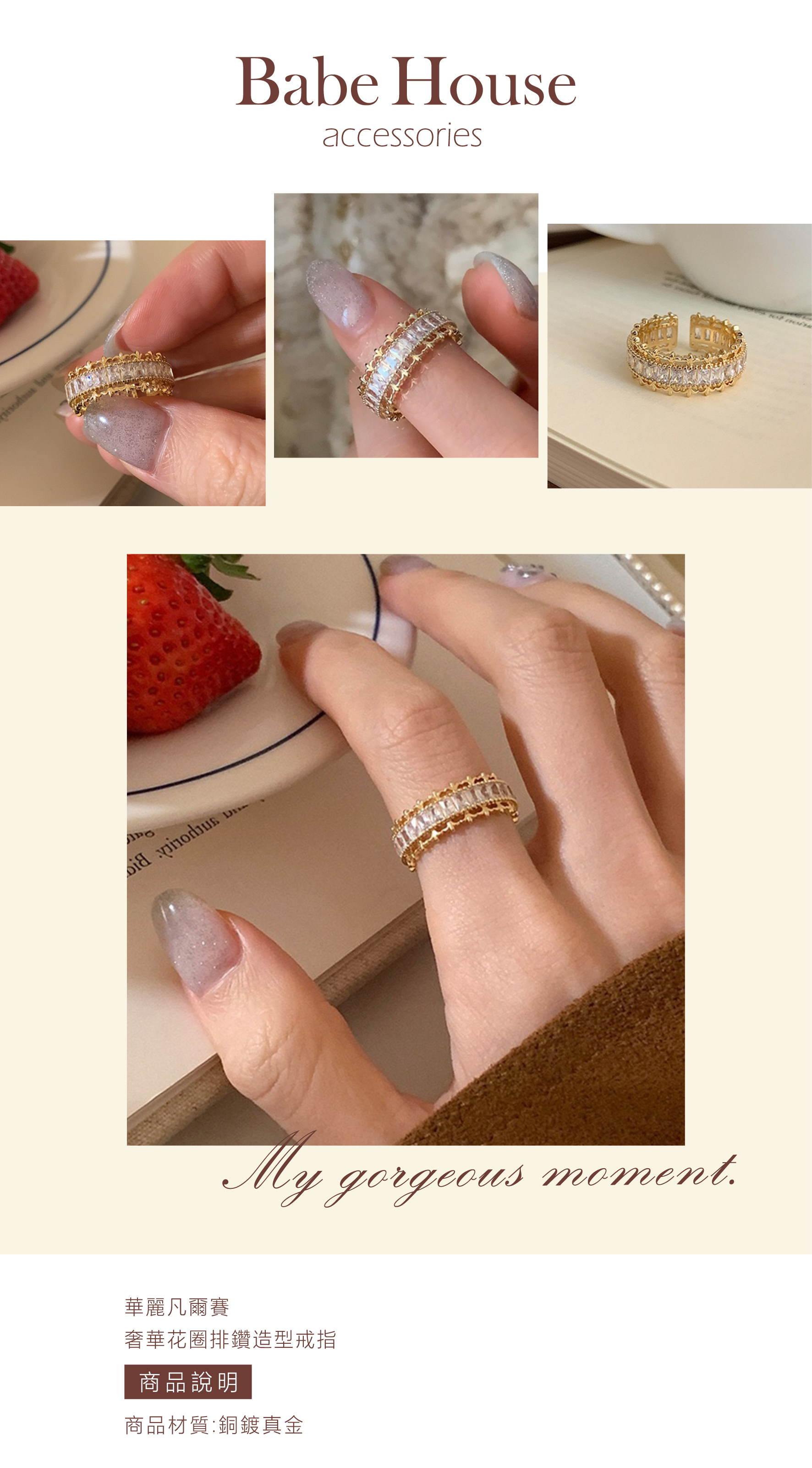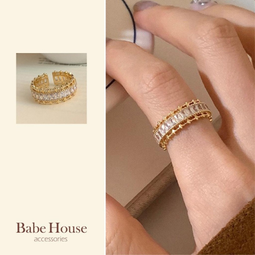 整圈閃耀鋯石設計,搭配溫潤金色,成就這款質感爆棚的排鑽戒指。