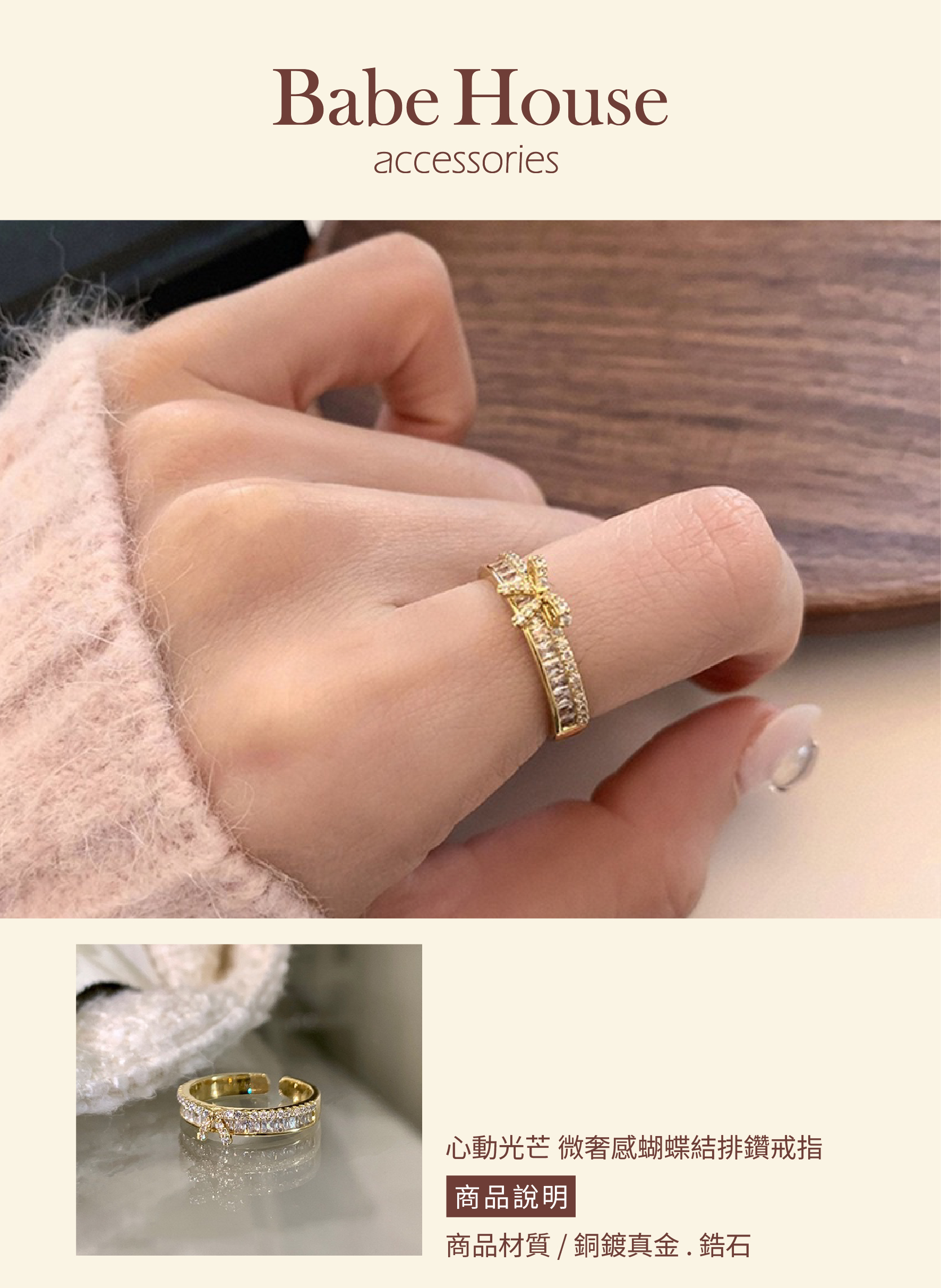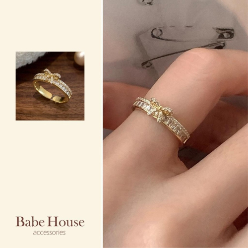 【現貨特價中】心動光芒 微奢感蝴蝶結排鑽戒指 蝴蝶結戒指 鑽石戒指 韓國飾品 流行款 南大門飾品 戒指 蝴蝶結飾品