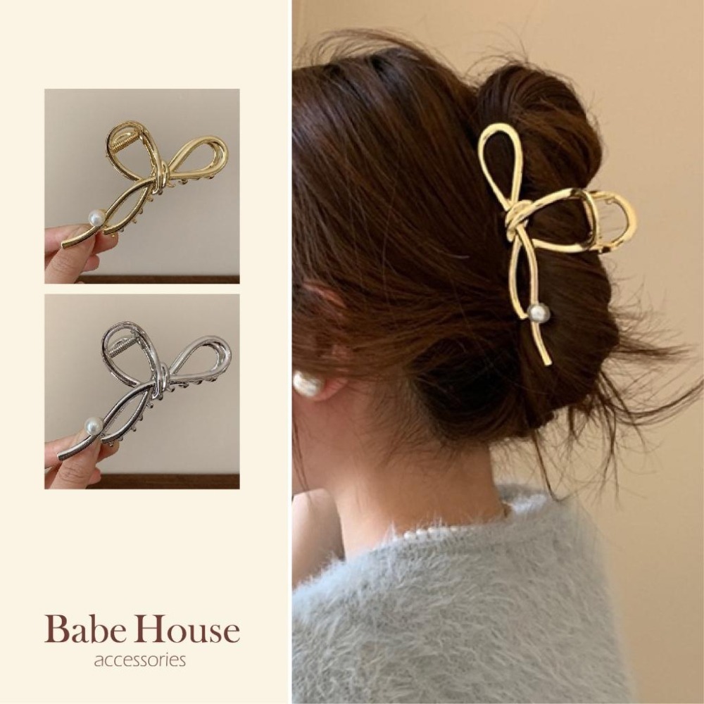 【現貨特價中】今夏必備 蝴蝶結珍珠大髮夾 流行髮飾 髮夾 鯊魚夾 珍珠髮夾 金色髮夾 銀色髮夾 韓國流行 蝴蝶結髪飾