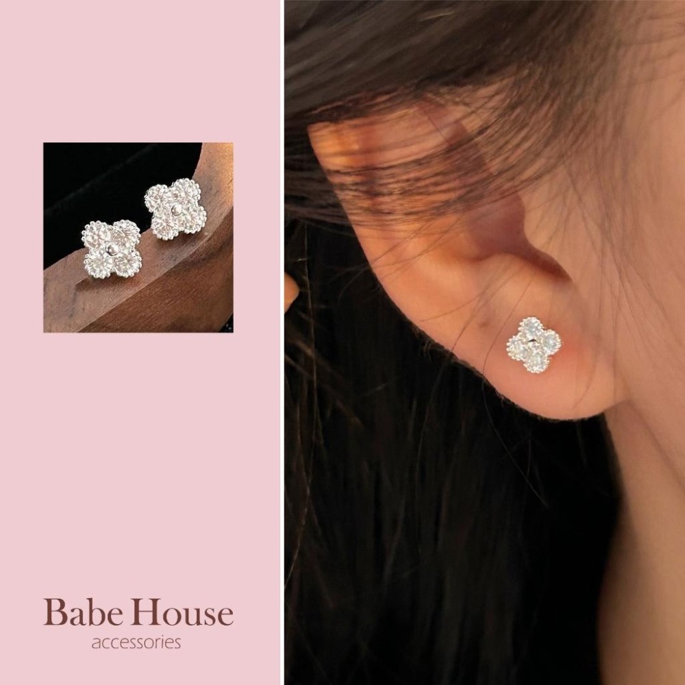 送禮首選【現貨特價中】奢華感 幸運的妳 鋯石四葉草耳環 純銀耳環 純銀 幸運草耳環 鑽石耳環 幸運草飾品 氣質款