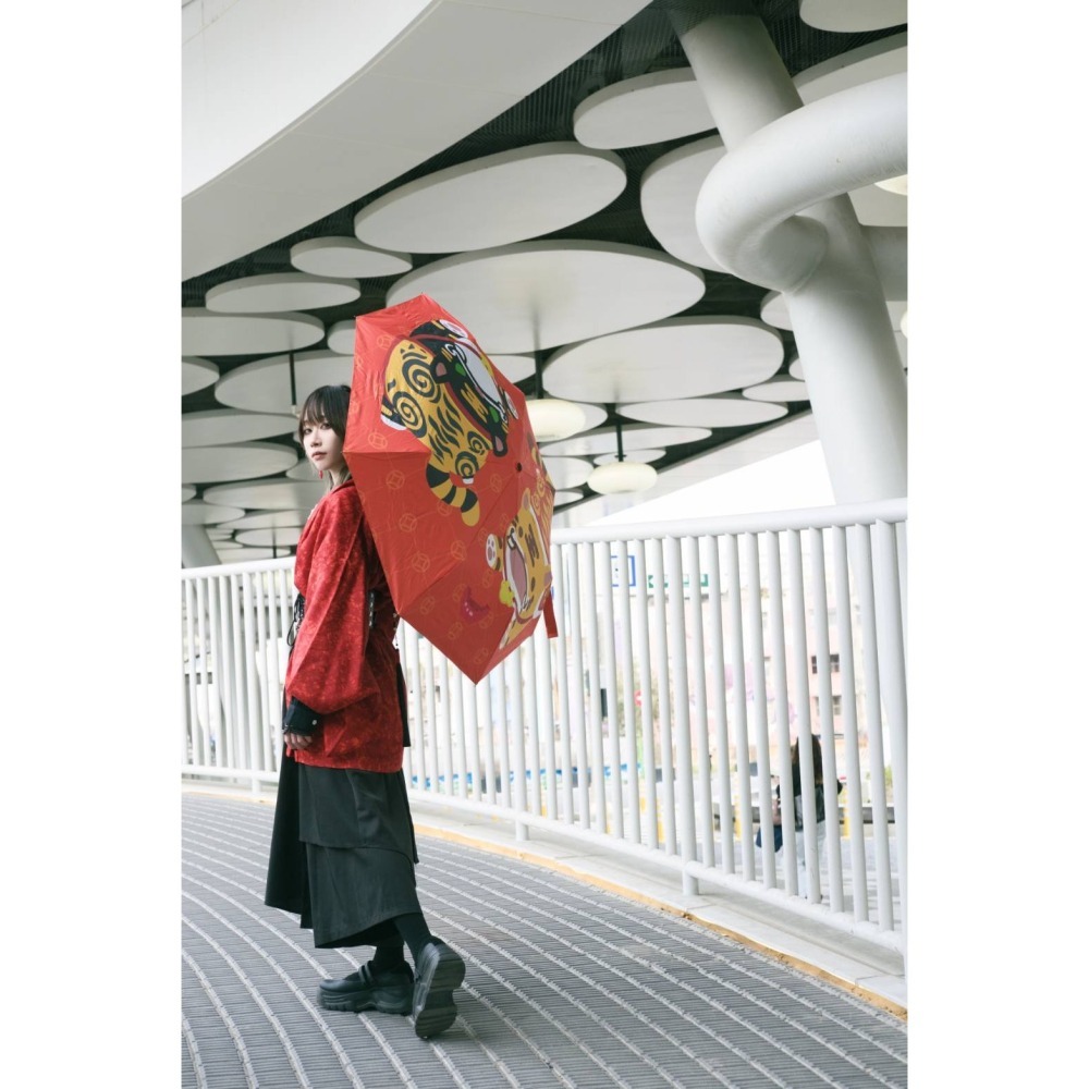 品名:【何記文創X PAPARAYA|虎爺實習中】虎爺保庇平安自動摺疊傘 (平安紅)
