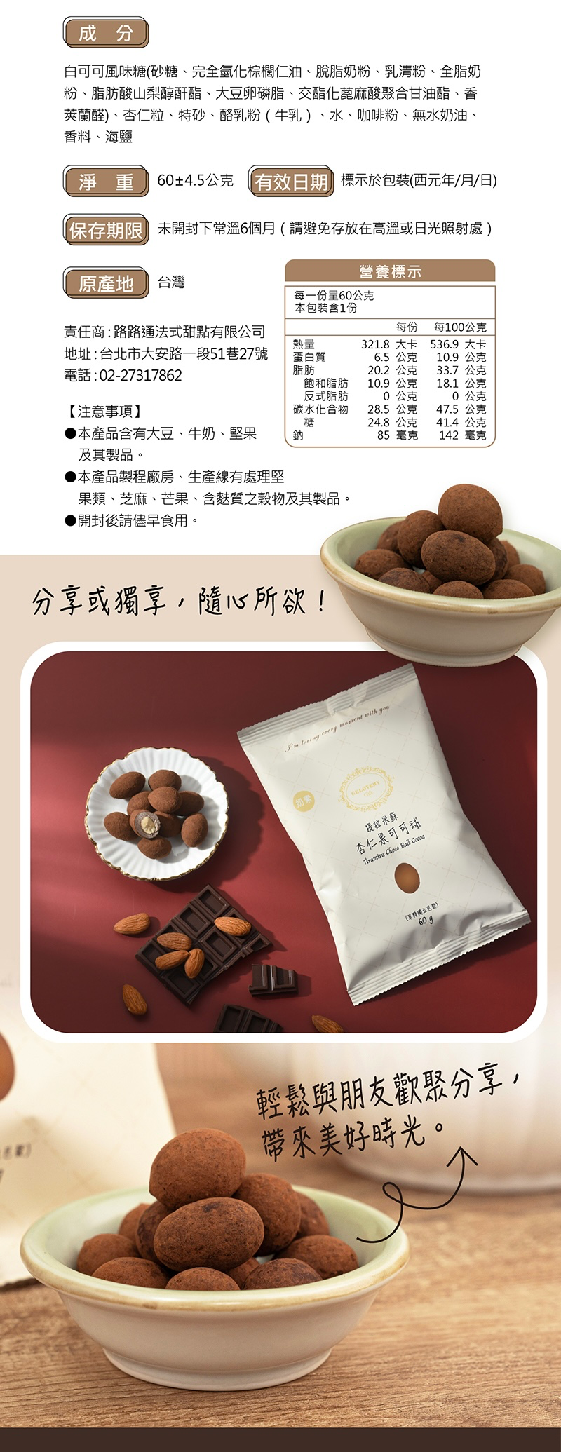 可用券🎟️提拉米蘇杏仁可可球 60g/包