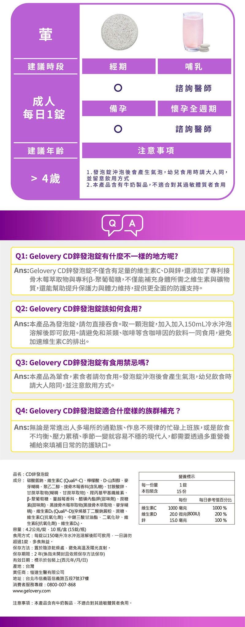 可用券🎟️ Gelovery CD鋅發泡錠 15錠/瓶