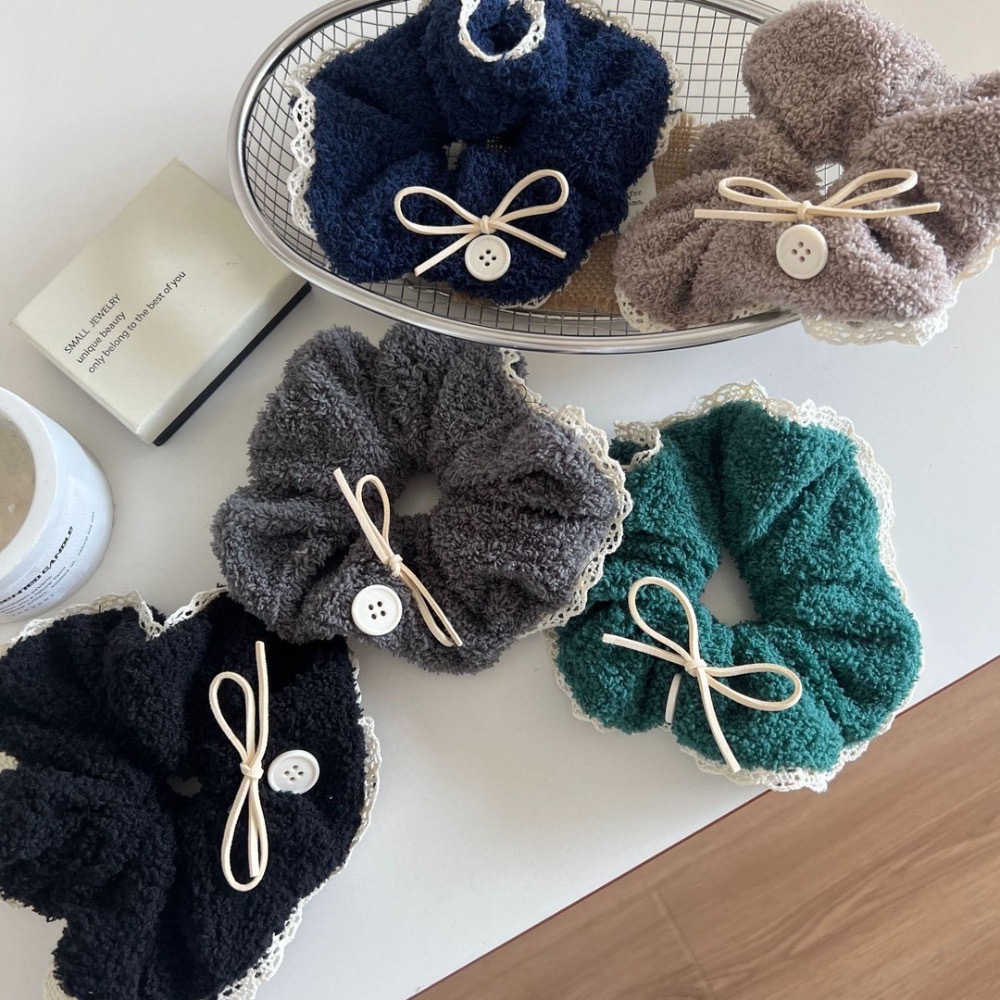 毛茸茸蝴蝶結鈕扣蕾絲花邊大腸圈