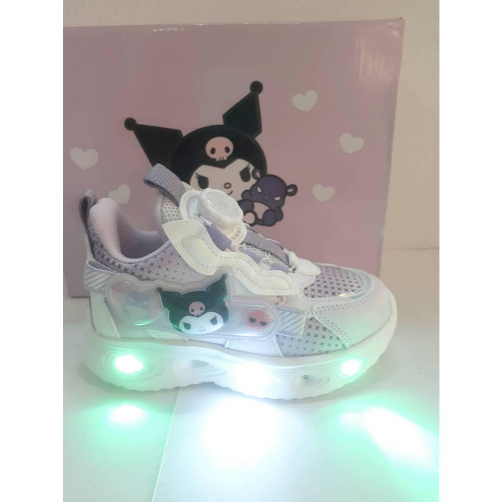 [kikishoes]三麗歐正版酷洛米兒童鞋電燈運動鞋 LED閃亮輕量減壓抗菌防臭吸震-粉紫色 旋轉式鬆緊調整腳背穿脫