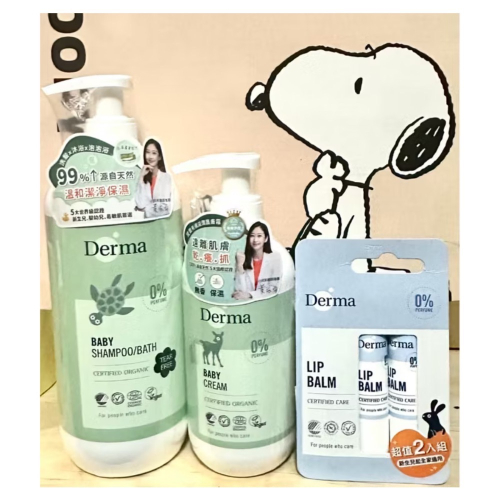 現貨!Derma 丹麥德瑪 沐浴露500ml |護膚霜250ml | 護唇膏2入組