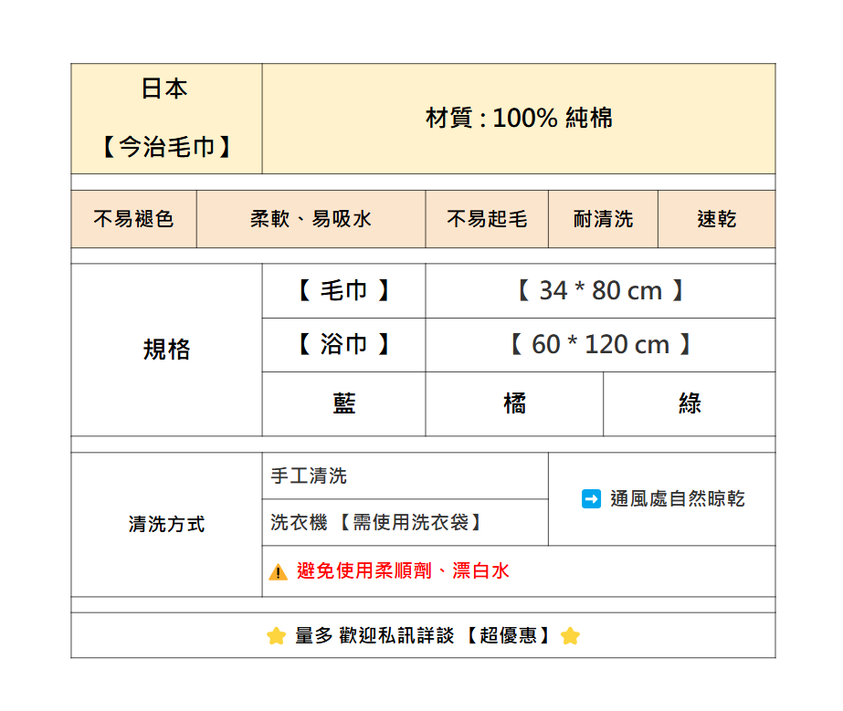 • 【橘色】毛巾 34 × 80 cm 【橘色】毛巾 34 × 80 cm