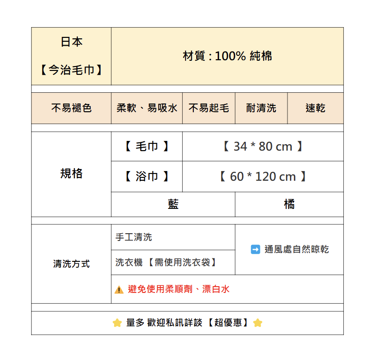 • 【橘色】毛巾 34 × 80 cm 【橘色】毛巾 34 × 80 cm