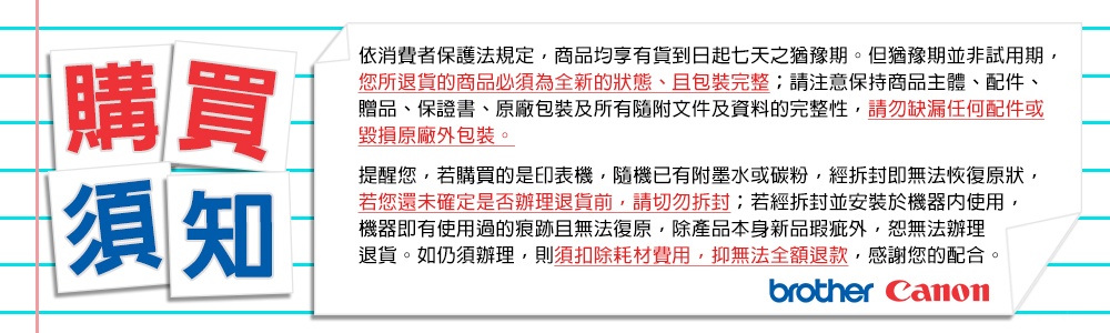 ★印表機除商品本身新品瑕疵外,購買後一經拆封或使用會酌收耗材整新費用,購買時請多留意。