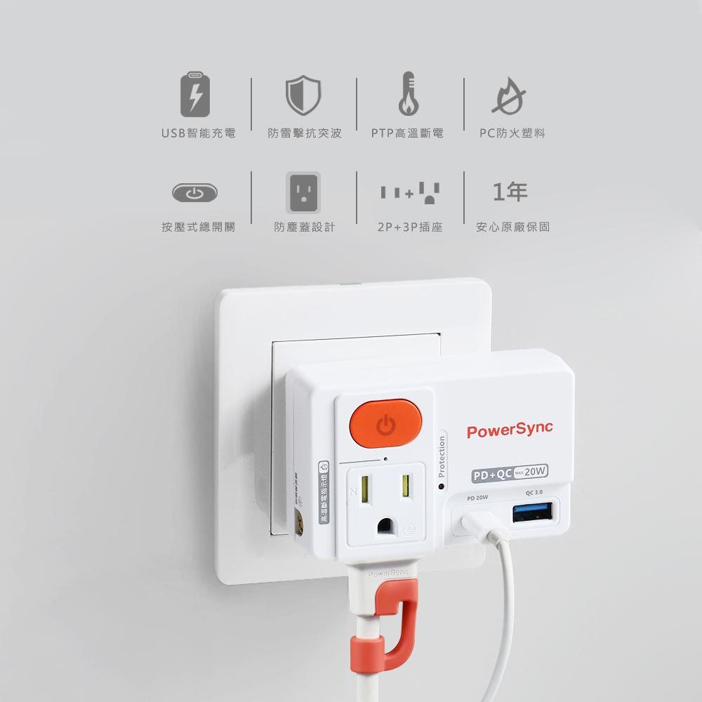 PowerSync 群加 2P+3P 高溫斷電PD+QC快充壁插(TCM12Q9)【現貨 附發票】