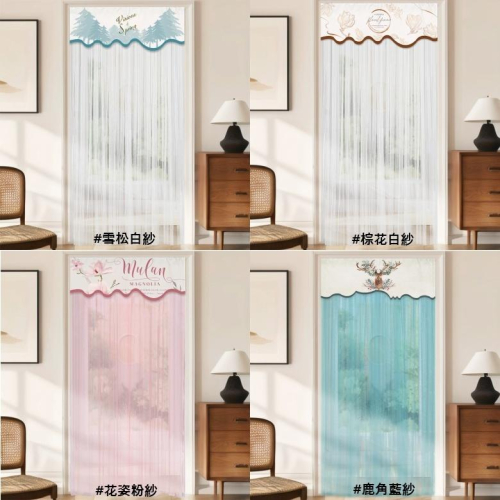 免打孔雙層紗防蚊分片門簾(雪松白紗/棕花白紗/花姿粉紗/鹿角藍紗)【現貨 附發票】