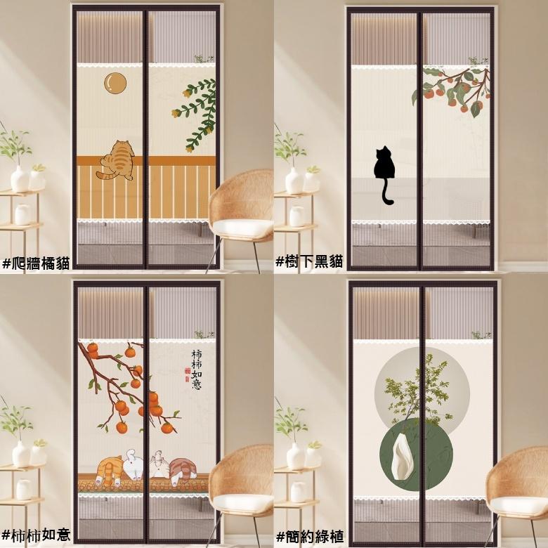防窺靜音磁性金剛紗防蚊門簾(爬牆橘貓/樹下黑貓/柿柿如意/簡約綠植)【現貨 附發票】