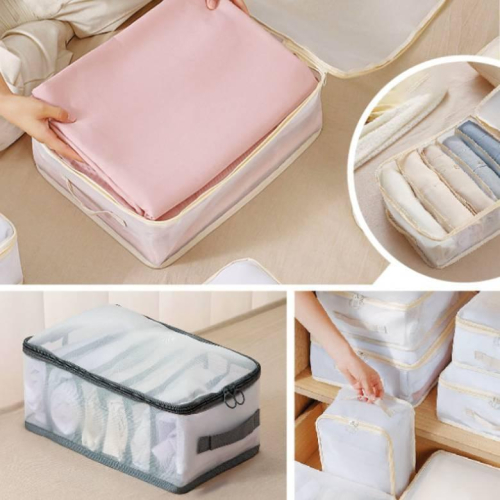 網紗衣物分類收納袋(無格/5格/6格)(米色/灰色)【現貨 附發票】