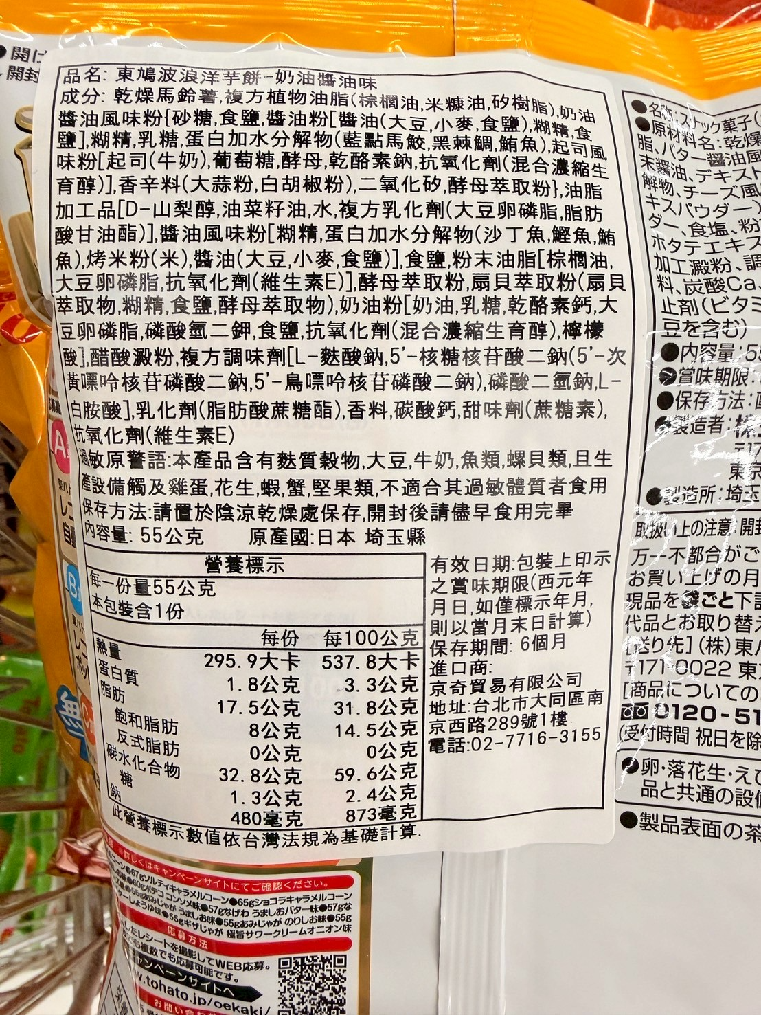 品名:東鳩波浪洋芋餅-奶油醬油味55g(效期2026/1/31)