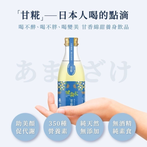 • 健飽卡甘酒是全天然發酵飲品,連三歲小孩都可喝,取代高糖分養樂多。