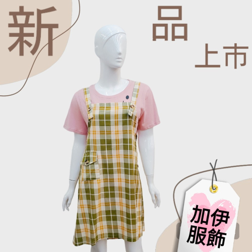 👒黃綠格紋吊帶裙(不含粉色內搭衣)