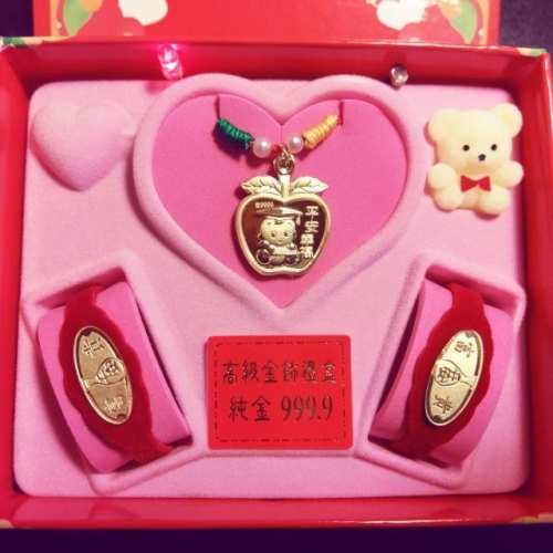 規格:彌月禮盒 一條項鍊、兩條手鍊。共三樣飾品
